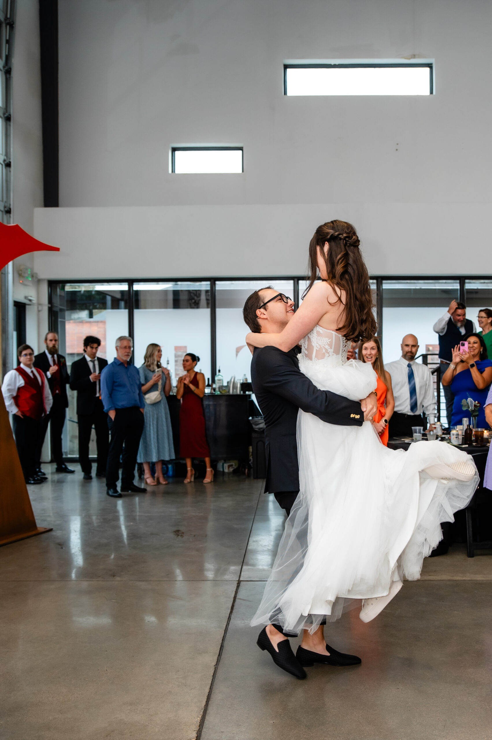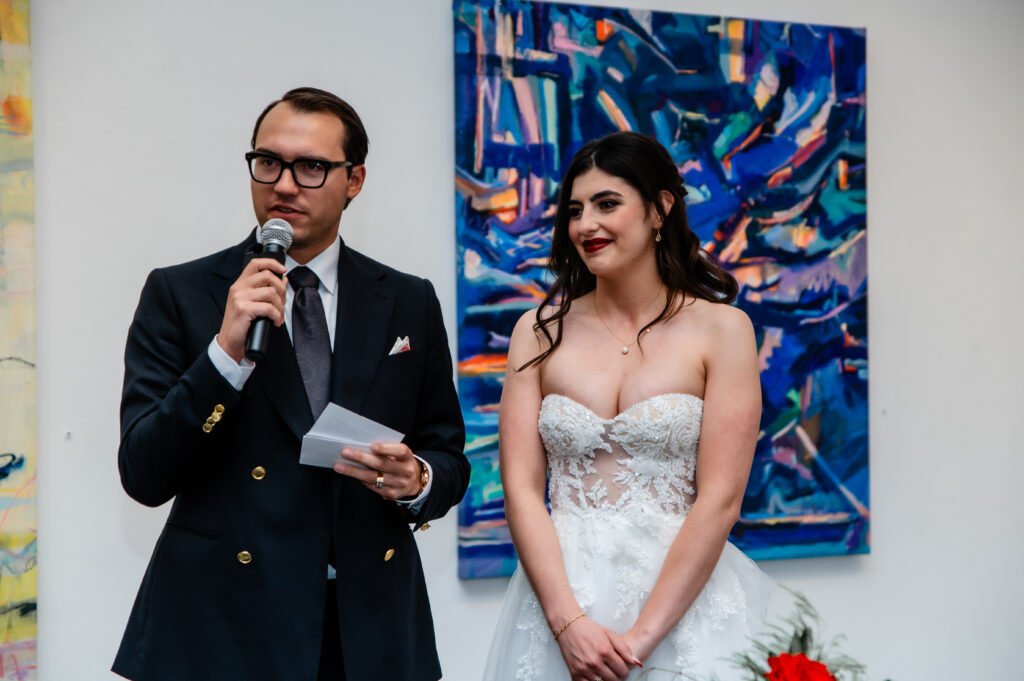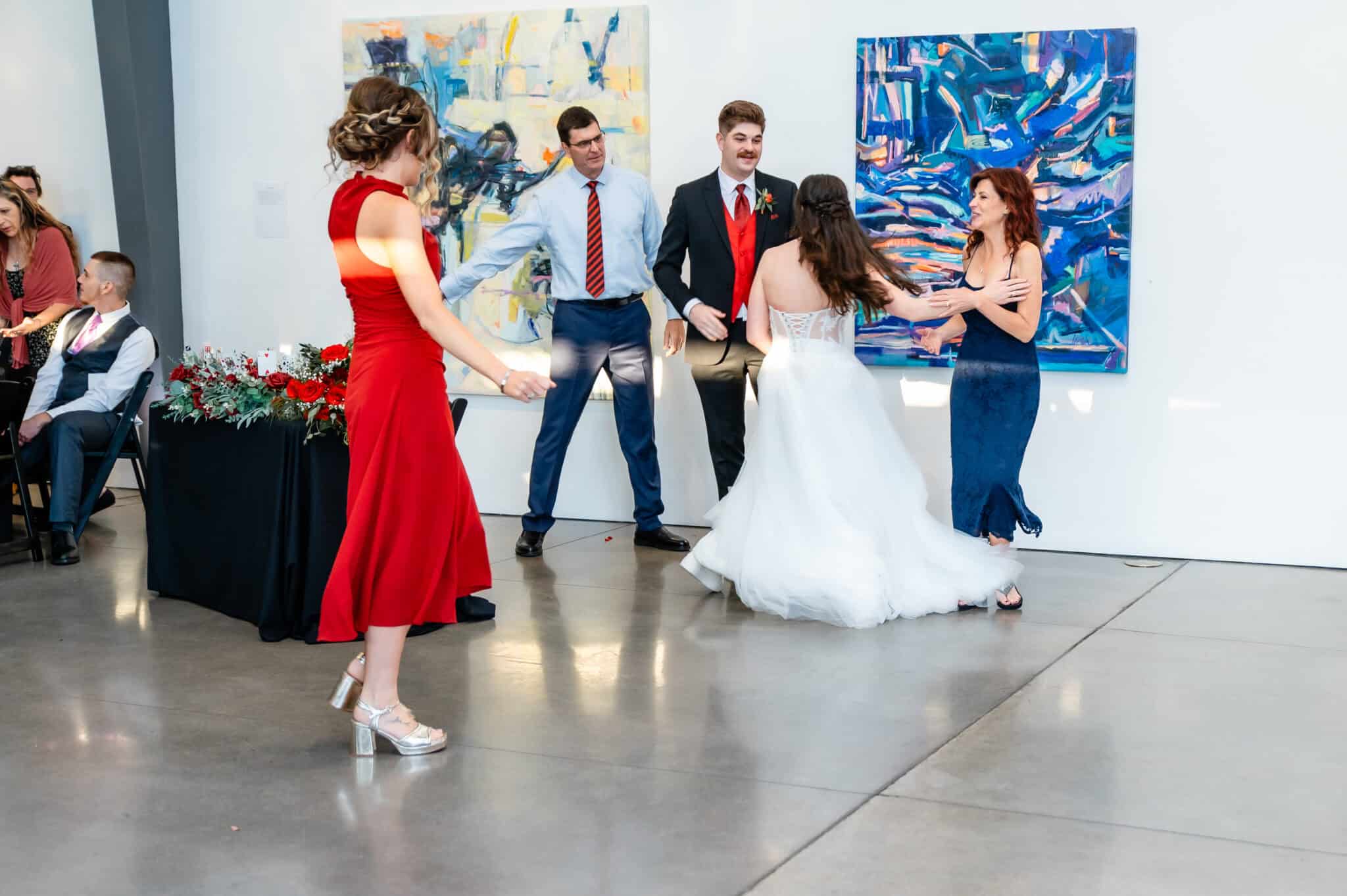 The reception moved to Space Gallery (@spacegallerydenver), a modern art venue with clean lines and bold pieces throughout. It matched their aesthetic perfectly — contemporary and polished without being pretentious.
