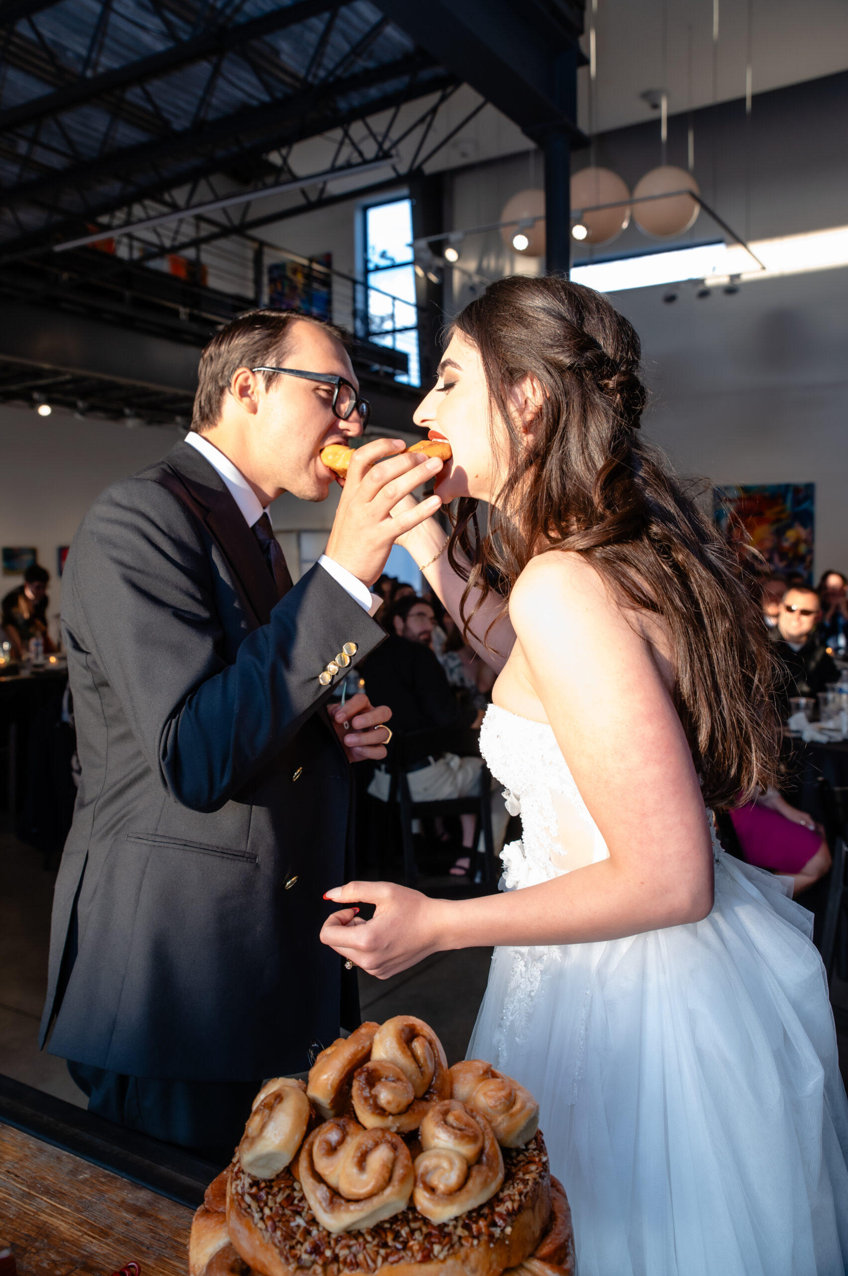 Instead of a traditional plated dinner, they brought in two food trucks: Carrera’s Tacos (@carrerastacos) and Mangia Mangia from Estes Park (@mangiamangiaestespark). Larimer Catering (@larimercatering) kept the food flowing throughout the evening. They swapped wedding cake for cinnamon rolls, which was a crowd favorite.